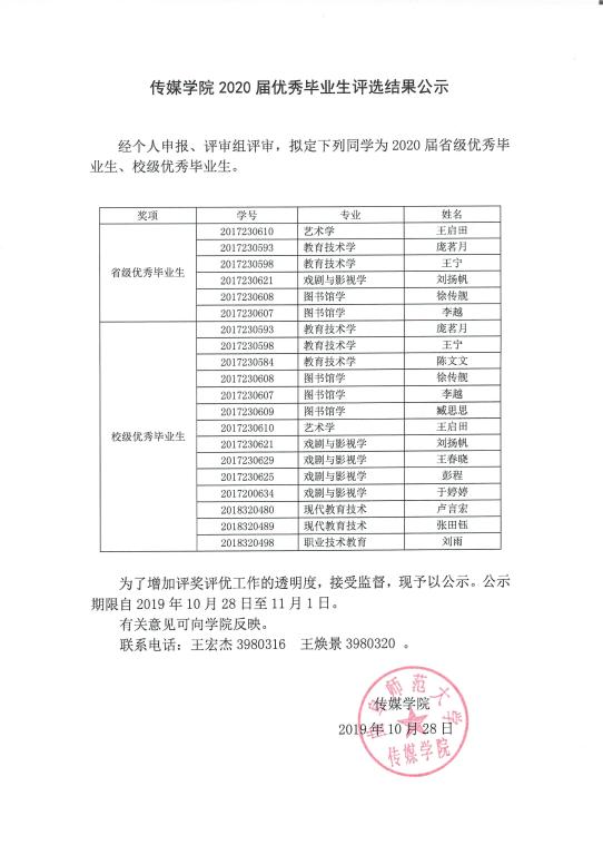 【来源:老王论坛 2020届优秀毕业生评选结果公示 | 发布日期:2019-10-28 】