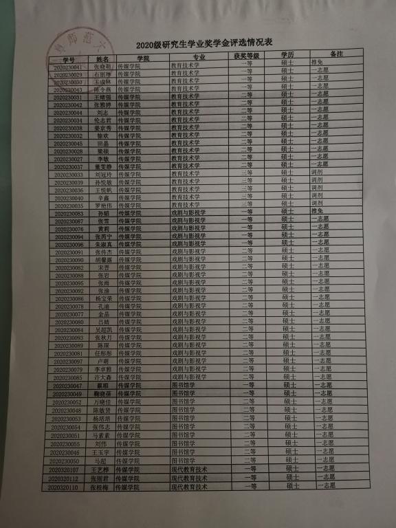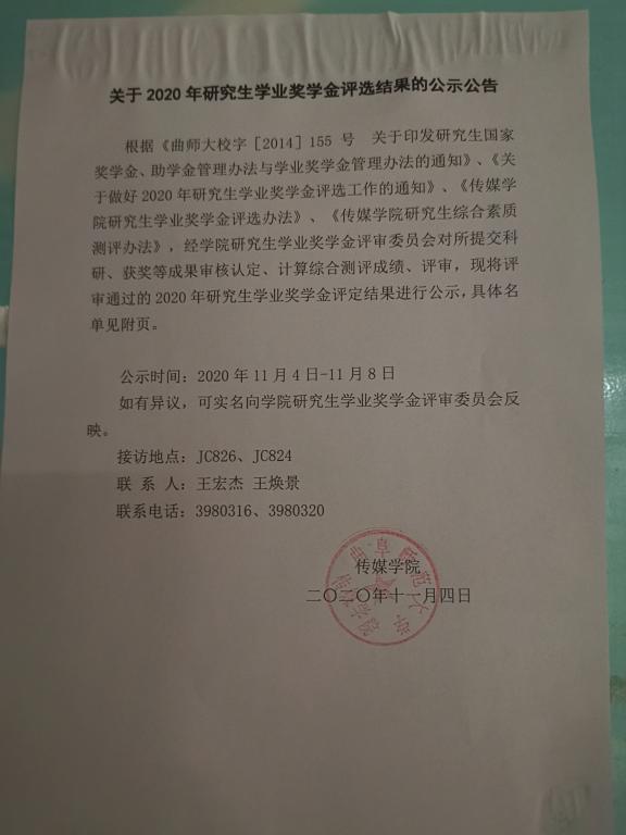 【来源:2020年研究生学业奖学金评选公示 | 发布日期:2020-11-04 】